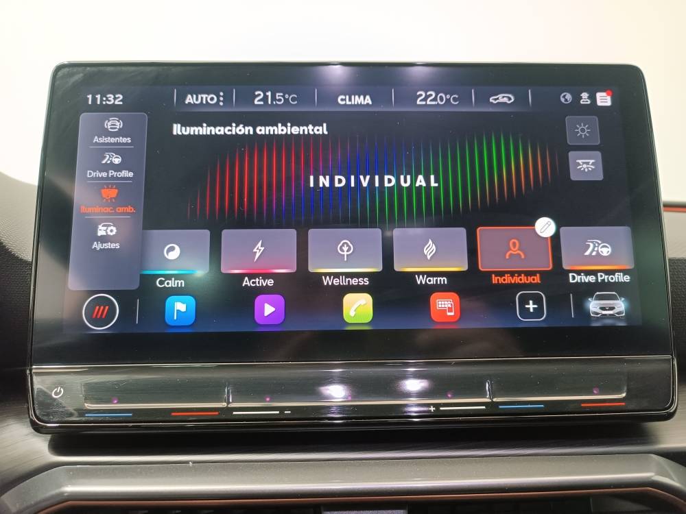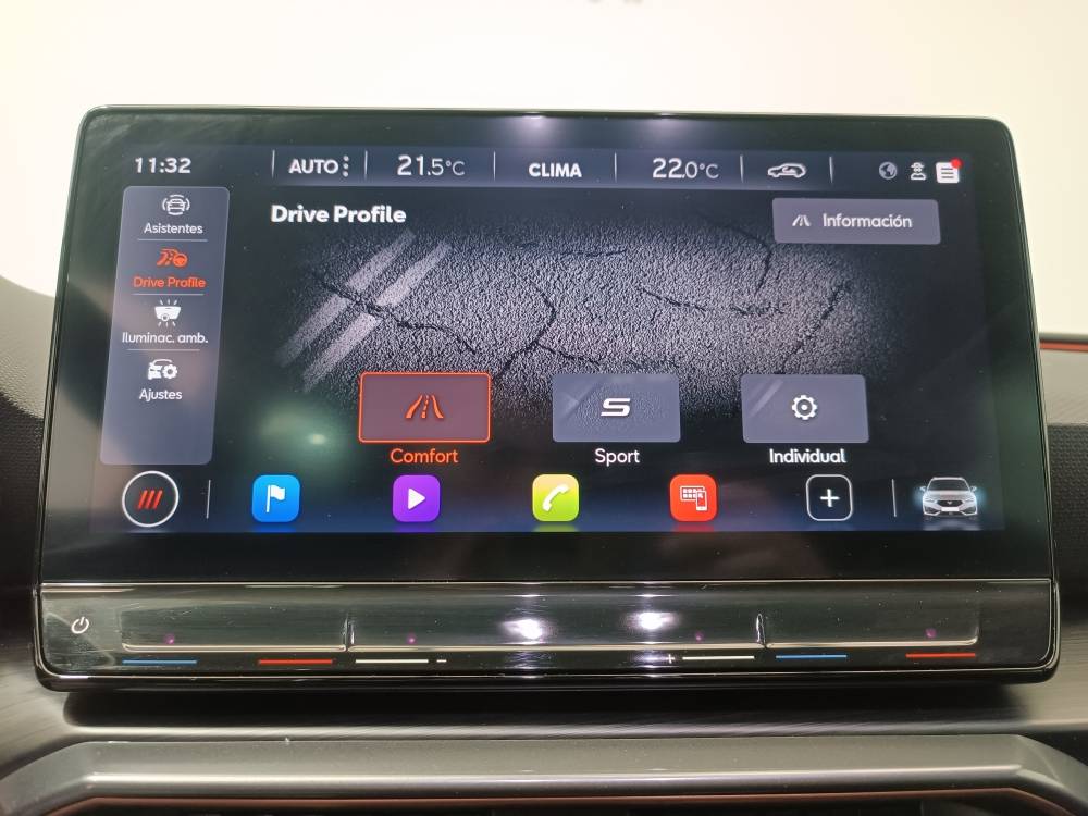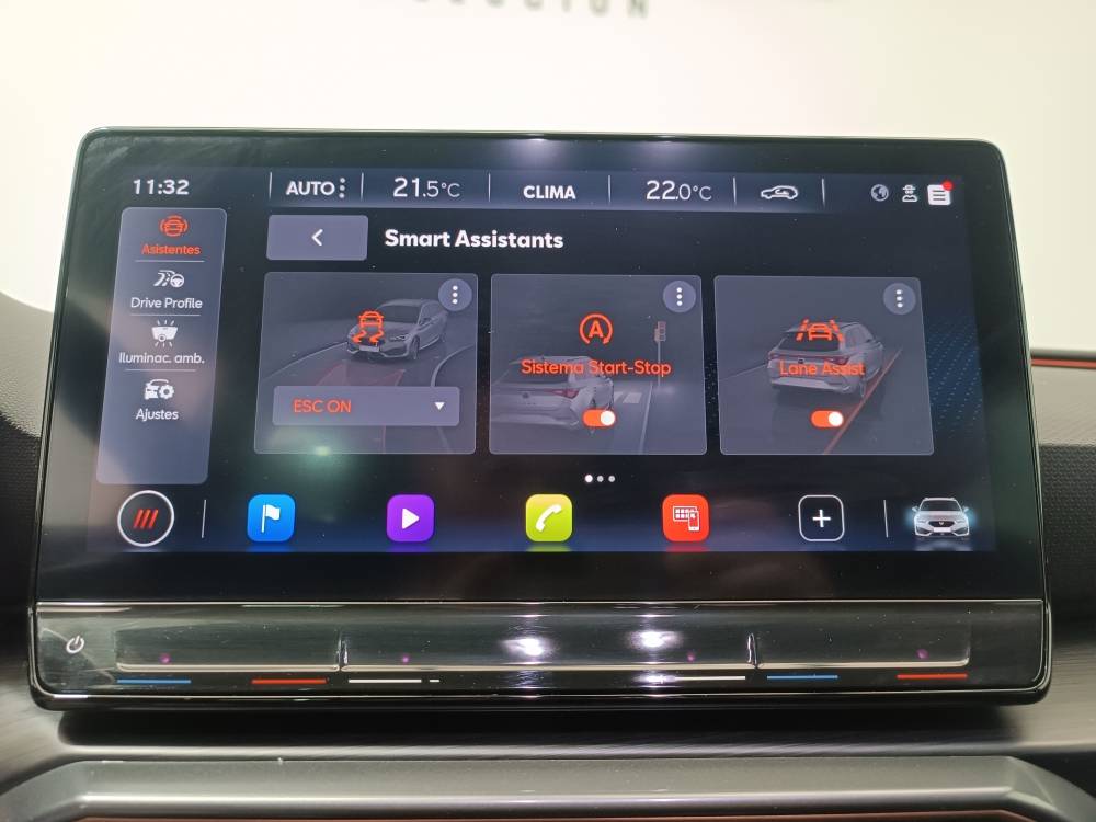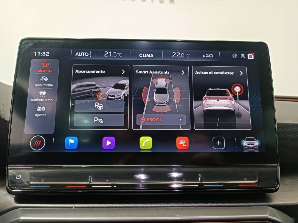 ¡¡¡OPORTUNIDAD!!! Cupra Leon 1.5 eTSI 150CV DSG equipado con Virtual Cockpit, Cámara de visión trasera, Sensores de aparcamiento delanteros y traseros, Full Link (Android Auto + Apple CarPlay), Park Assist, Freno de estacionamiento eléctrico, Sistema Start-Stop, Lane Asist, ACC, Front Assist, Side Assist, Advertencia apertura de puertas, Detección de señales de tráfico, Asistencia Eco, Detección de cansancio, Cupra Drive profile, Iluminación ambiental, Volante Multifunción calefactable, Luces LED Automáticas, Llantas de aleación de 18", Botón SOS... y mucho más.
