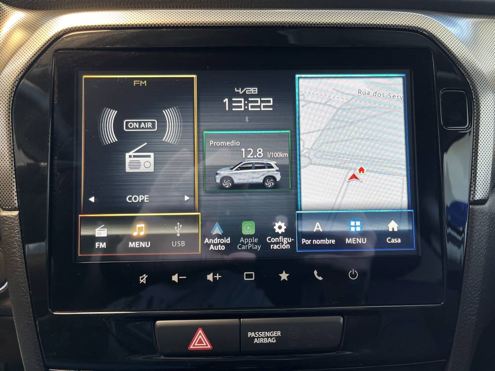 FANTÁSTICA OPORTUNIDAD! Suzuki Vitara 1.4 T S3 Mild Hybrid equipado con Cámara de visión trasera, sensores de aparcamiento, sistema de navegación, Android Auto, Apple CarPlay, pantalla táctil, climatizador automático, aviso de colisión frontal, aviso de salida de carril, elevalunas eléctricos, volante multifunción, luces automáticas, botón SOS... ¡y mucho más!