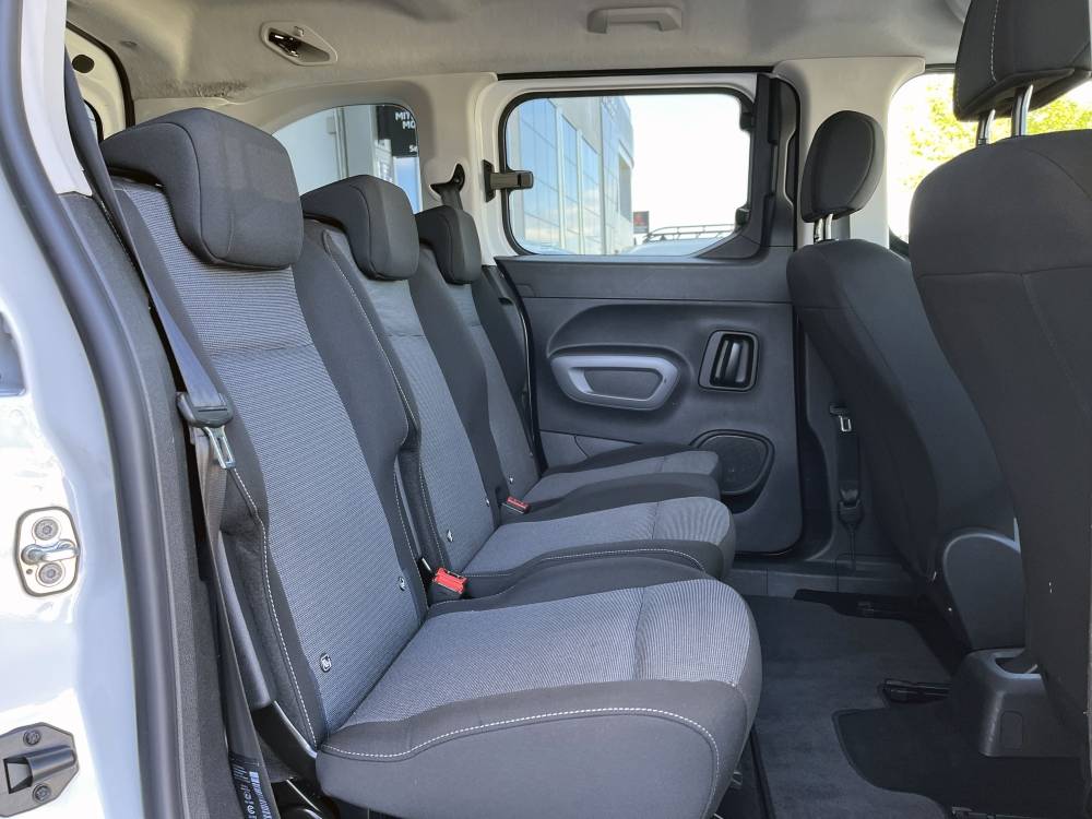 Asiento delantero del conductor individual, ajuste longitudinal manual y ajuste manual en altura con ajuste manual del respaldo, asiento delantero del acompañante individual y ajuste manual en altura con respaldo plegable a posición de mesa
