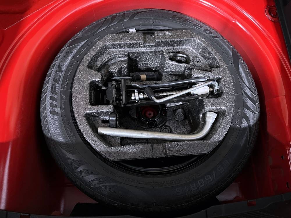 Rueda de repuesto con llanta en acero de menor tamaño que el resto