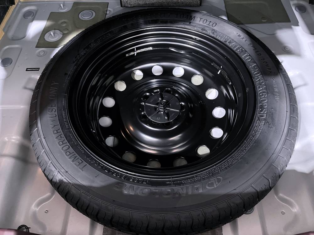Rueda de repuesto con llanta en acero de menor tamaño que el resto