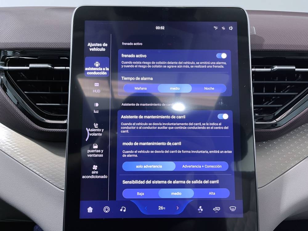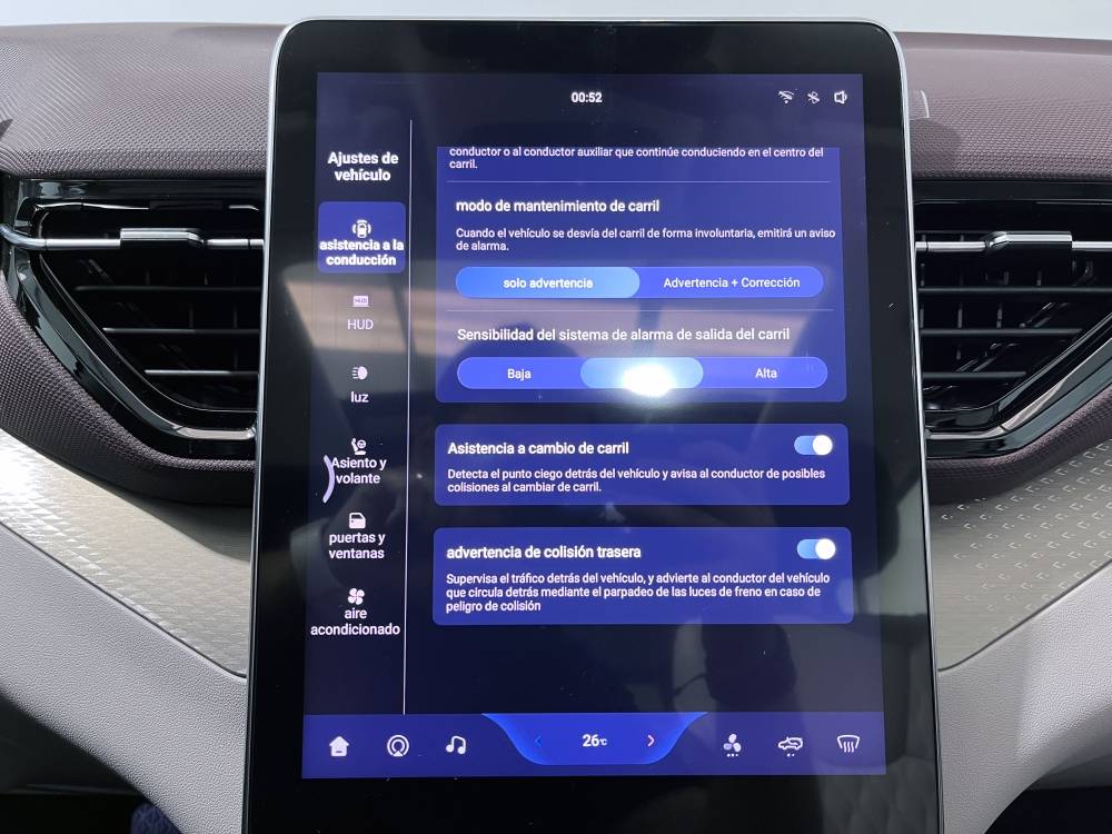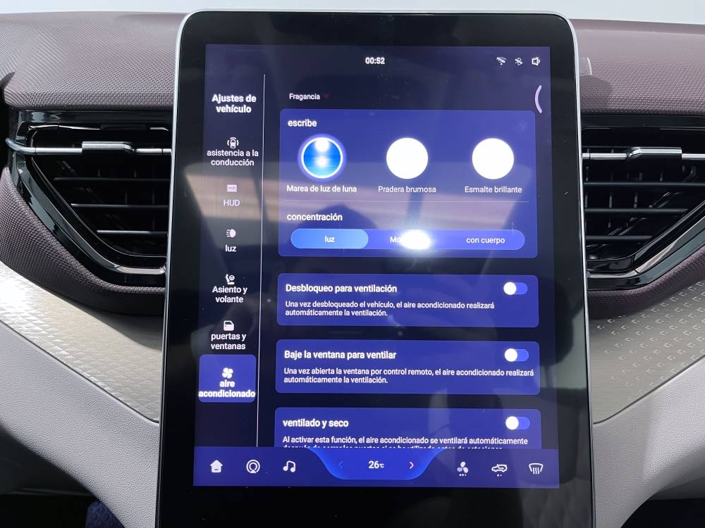 Sistema de ventilación controles en pantalla táctil y calefacción del motor